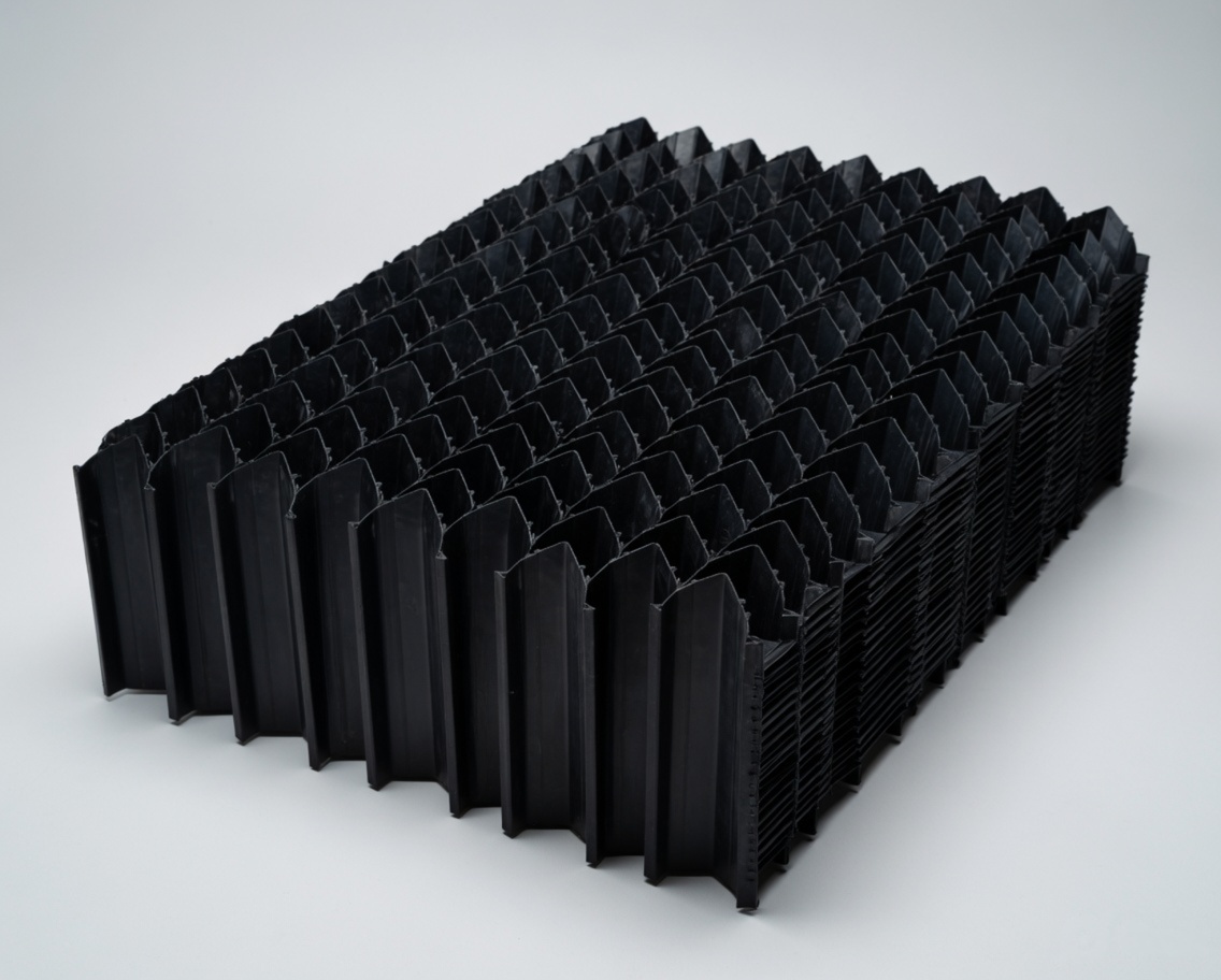 Tube Deck Media operates on the principle of lamella settling, where water flows upward through a series of inclined tubes, allowing solid particles to settle on the tube surfaces and slide down due to gravity, while clarified water flows upward and exits the system.